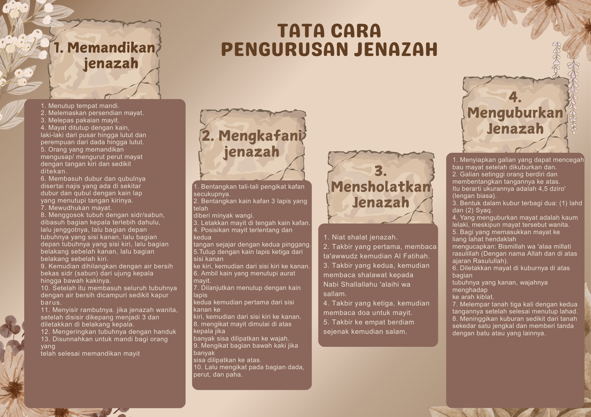 This is a mind mapping poster on how to handle a corpse. There are several points in it, namely: Bathing the corpse, shrouding the corpse, pray ...
